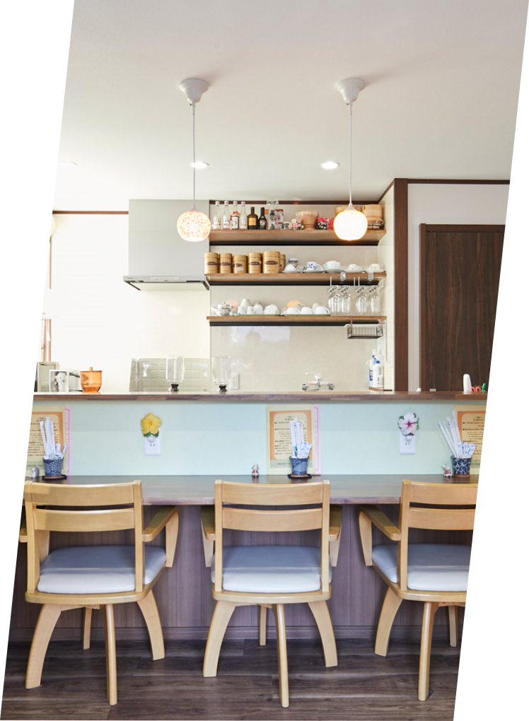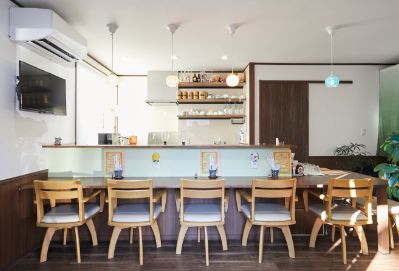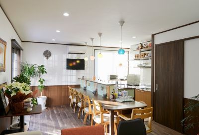 リビングの半分と和室をカフェスペースに。