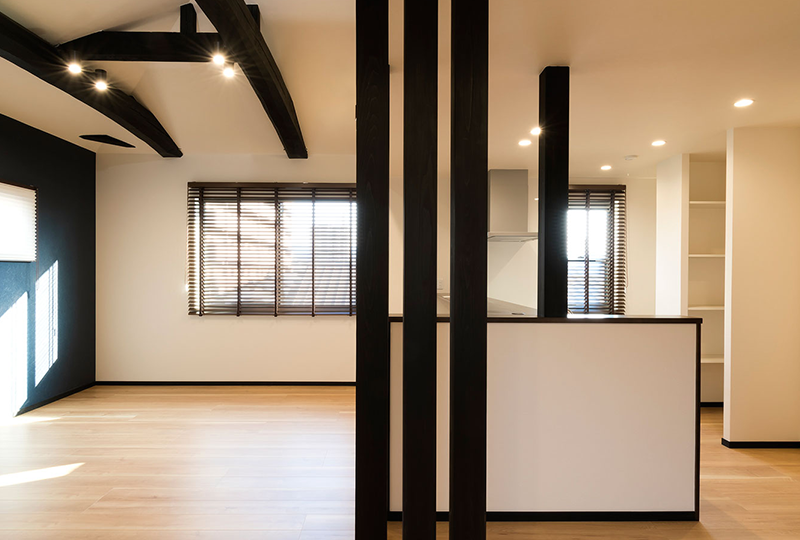 既存の格子を天窓に取り付けたり、各空間にアクセントとなる内装を取り入れ