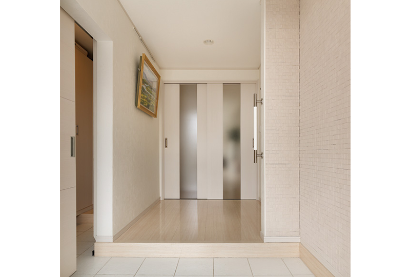 玄関にモノがあふれないように工夫し、外装・外構も白を基調に一新しました。