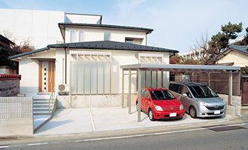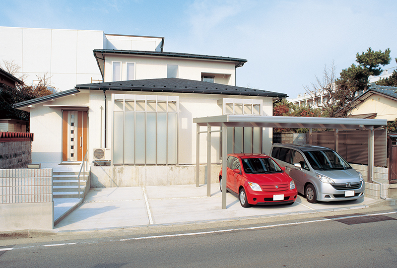 東側の道路に面して玄関を付け替え、駐車スペースなどの外構工事も行いました。